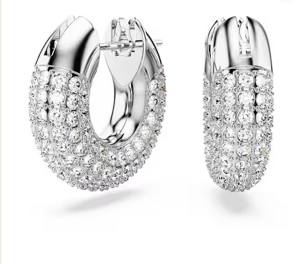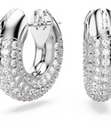 Un tocco moderno ai classici orecchini a cerchio, questo paio genderless conferirà dinamismo a qualsiasi outfit. Il design scultoreo celebra l’iconica tecnica pavé di Swarovski con cristalli luccicanti laminati incastonati in una montatura placcata rodio....