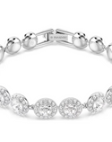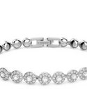 Un classico intramontabile. Il bracciale Tennis placcato rodio propone una fila di cristalli Cry taglio Round, ognuno incorniciato dal pavé di cristalli Cry. Il gioiello si abbina perfettamente agli altri accessori della collezione Una Angelic....