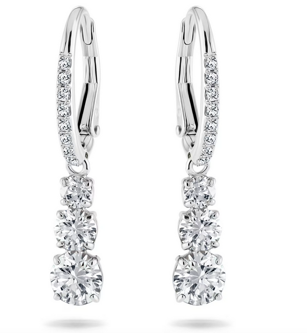 Irradia meraviglia con questi scintillanti orecchini Swarovski. Ciascun elemento placcato rodio presenta una lunga catena collegata a un motivo double face, che offre una diversa disposizione di cristalli taglio Round su ciascun lato. Il motivo...