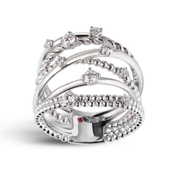 Anello fasce incrociate in oro bianco con diamanti Anello multifilo in oro bianco con nove diamanti ct 0,50 . La rivoluzione copernicana stabilisce che la Terra e i pianeti orbitano intorno al sole. Come Copernico,...