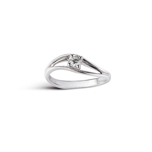 Anello Solitario con pietra centrale Alfieri & St. John in oro bianco con diamante centrale ct 0,14 colore G purezza SI1