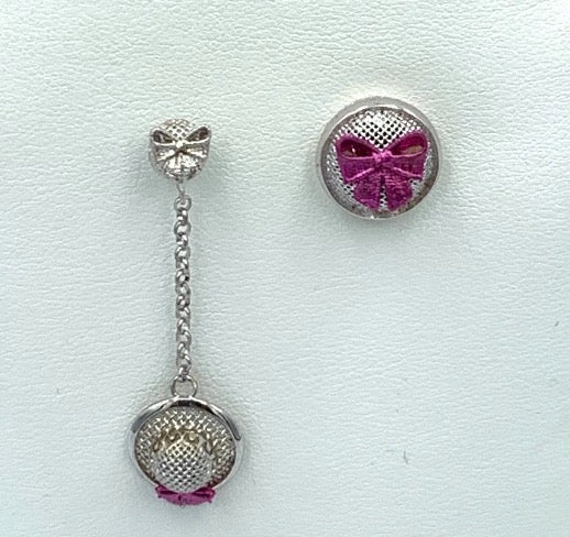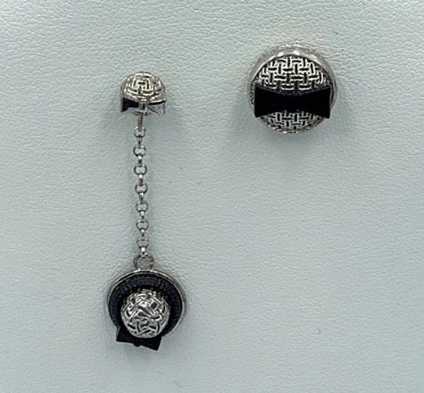 Gli orecchini come in foto si vendono uno corto a lobo con chiusura a farfallina ed uno lungo sempre con chiusura a farfallina.