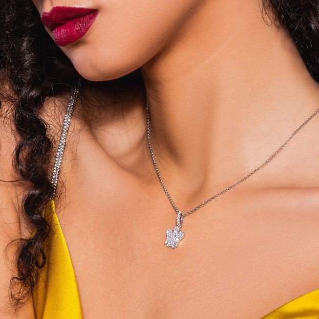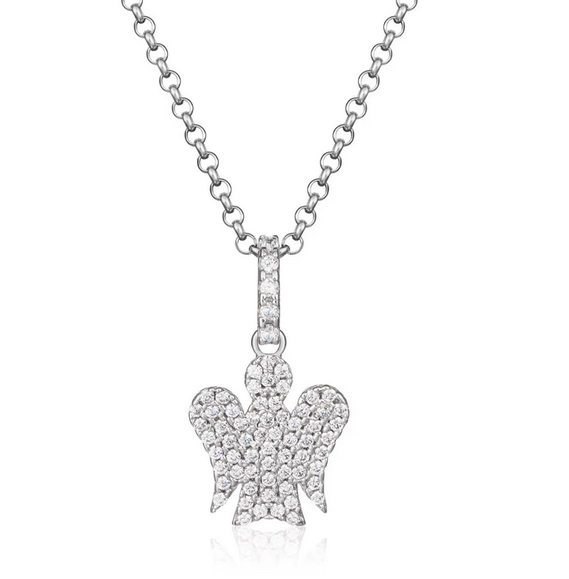 Collana con pendente Angelo in argento e zirconi bianchi.