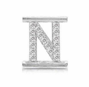 Charm Donna in Argento di Eleonora Giordani. Charm realizzato in Argento 925, a forma di lettera N con Zirconi bianchi, compatibile con Bracciale Bangle Rigido della stessa Collezione. Il Gioeillo viene spedito con Scatola Originale...