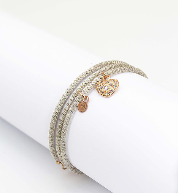 Bracciale Shinny realizzato con una catena a pallina interna in ottone, rivestita da una maglia in rame colorato con pendente realizzato a mano in ag925 con zirconi bianchi.
