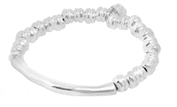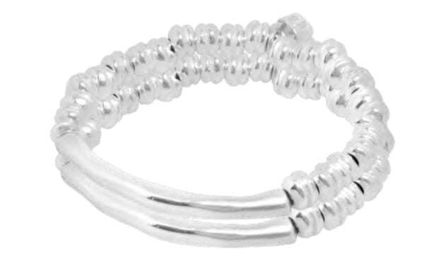 Bracciale a molla in tessuto con elementi rivestiti in argento 925°°° e Swarovski. Accessorio dalle forme irregolari capace di arricchire anche il look più casual.
