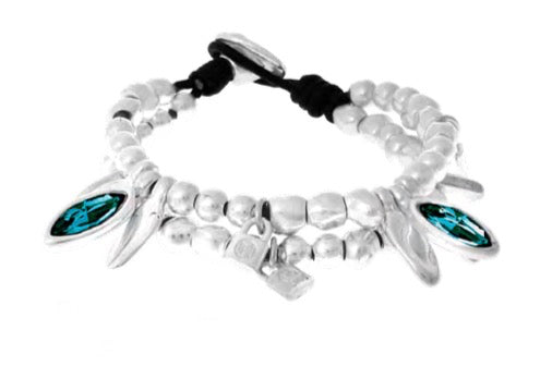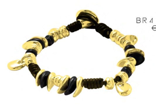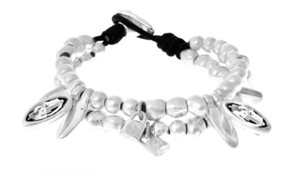 Bracciale multifilo in pelle con elementi rivestiti in argento 925°°°. Accessorio dalle forme irregolari capace di arricchire anche il look più casual.