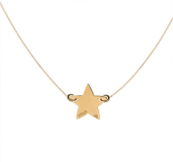 Una piccola stella senza cielo alla ricerca della sua proprietaria: falla brillare tu. Scintillante ciondolo a forma di stellina con la scritta “Wish” in oro 18 kt abbinata ad una catenina d’oro crea un gioiello...