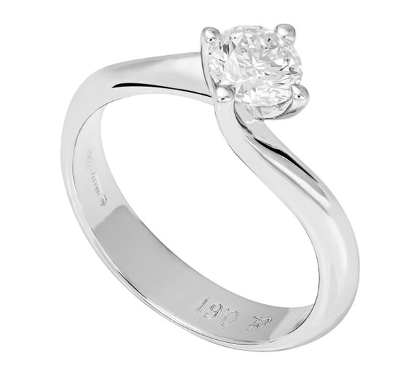 Anello solitario modello Valentino in oro bianco 18 ct. con diamante centrale taglio brillante. Anello solitario Valentino in oro bianco 18 ct. da gr. 3,40 e diamante centrale da 0,27 ct. purezza F color, qualità VS....