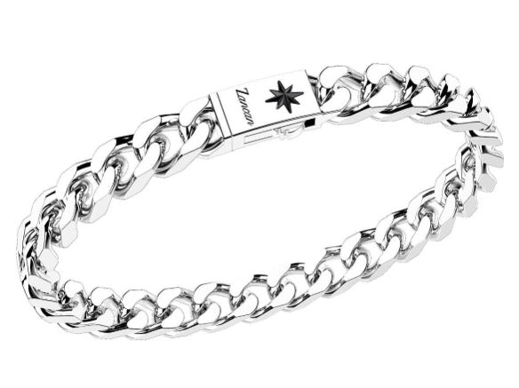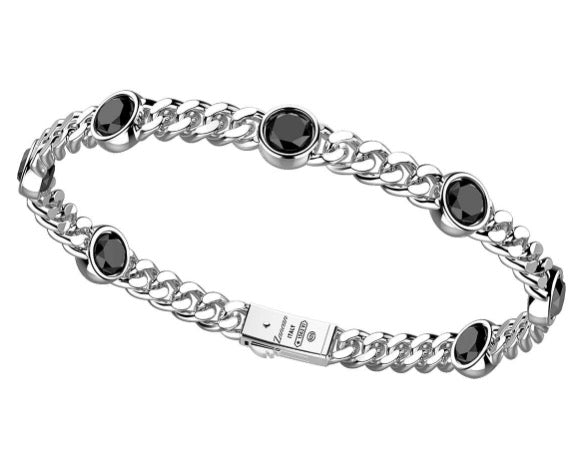 Bracciale da uomo di Zancan della collezione Cosmopolitan Stone. Gioiello realizzato in argento 925 e onice con soggetto stone. Bracciale di lunghezza 21cm e chiusura a Moschettone.