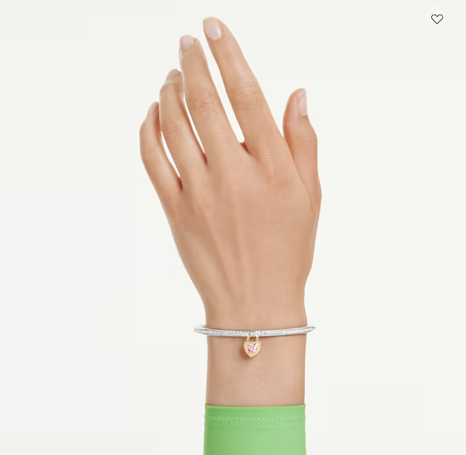 Una lussuosa dichiarazione di romanticismo, il sottile bangle è impreziosito da cristalli Cry e presenta al centro un cuore ispirato a un medaglione. Il motivo romantico presenta una Swarovski Zirconia rosa con placcatura in tonalità oro su un lato, e un pavé di cristalli Cry con placcatura rodio sull'altro lato. Indossalo con l'anello coordinato per massimizzare il look dell'amore.