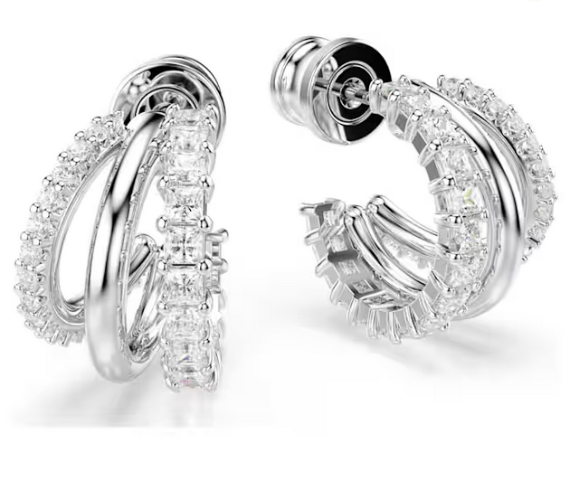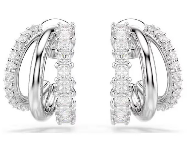 Gli orecchini Hyperbola, magistralmente realizzati, mettono in risalto una bellezza unica. Su ciascun lato, i tre mini cerchi sono presentati con placcatura rodio, impreziositi da Swarovski Zirconia con tagli Round e Square in una montatura a griffe. Abbinali a un bangle o a un pendente coordinato per un look mozzafiato.